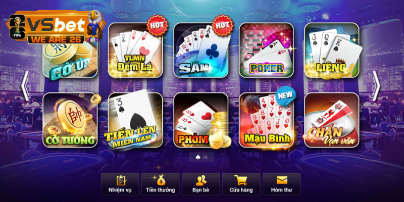 Game bài là một trong những hình thức giải trí trực tuyến được nhiều người chơi yêu thích nhờ tính kịch tính và khả năng tư duy chiến thuật cao. Các trò chơi như tiến lên, phỏm, mậu binh hay baccarat mang đến trải nghiệm đa dạng và đầy hấp dẫn. Tại Vsbet, người chơi có thể tham gia kho game bài phong phú với giao diện mượt mà và tỷ lệ thưởng cạnh tranh.